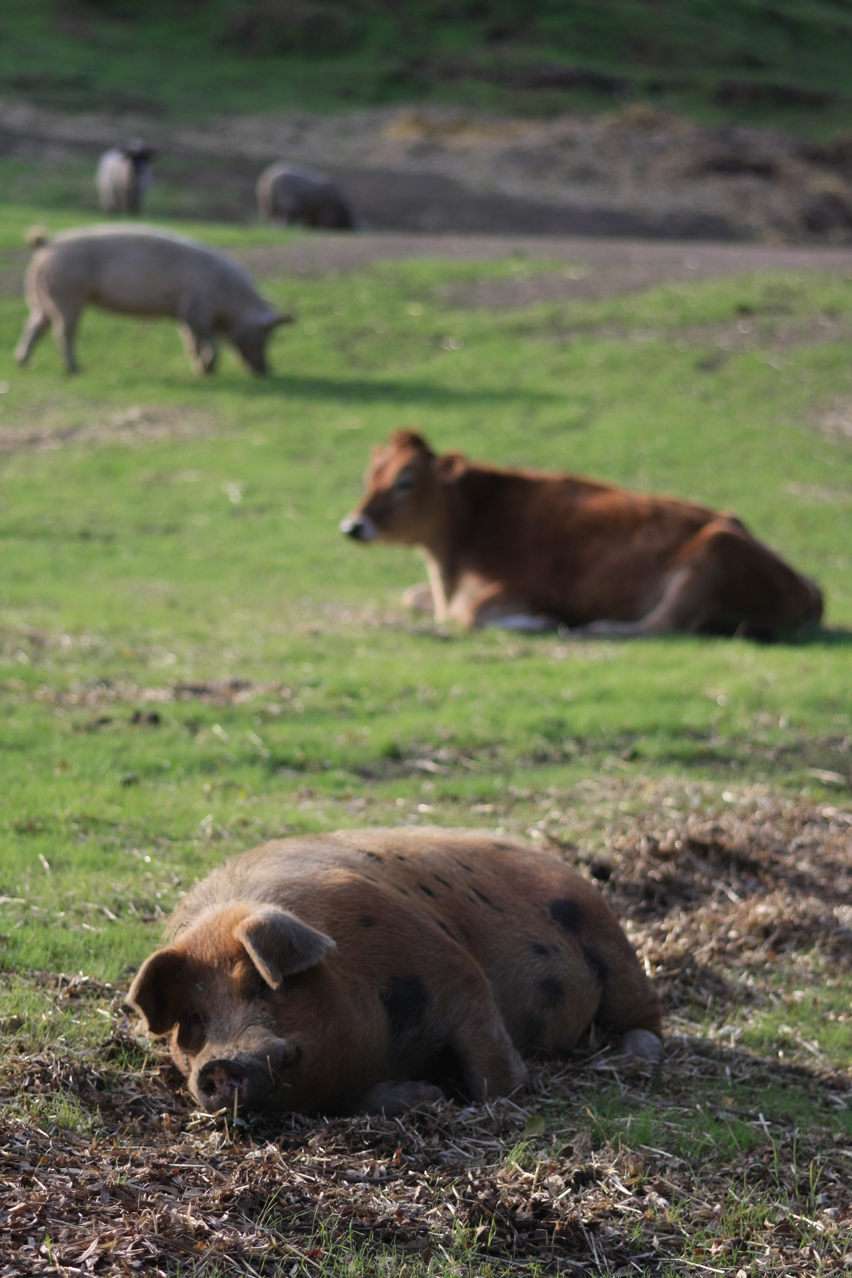 “Through this all,” John reflects, “there’s some feeling of beneficial regret. I have ancestors who were cattle people. I myself did a lot of fishing. I need to do something about this, because I look at those prior behaviors, and there’s a little bit of horror. I need to do something to make it better. There’s some feeling that we have committed a wrong, and we realize we can’t undo it, but we set out to do some good based upon the wisdom we gained from our errors. I have apologized to the animals as well. Maybe that’s what I was doing with the pig—saying, ‘Sorry!’”