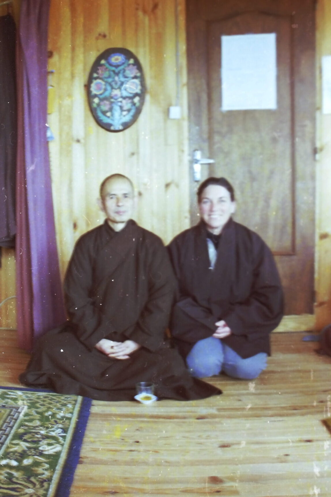 I knew Terry from my early days at Plum Village. We both lived in Lower Hamlet in 1997 when it was a lay hamlet, before the nuns came back to live there, and we were friends. I also got to know her a little more when I stayed at Green Mountain Dharma Center in fall 1998. Whenever I fill a hot water bottle, I think of her because at GMDC she taught me how to bend the hot water bottle at an angle when pouring in hot water, so no air pockets would form and bubble up and burn you.