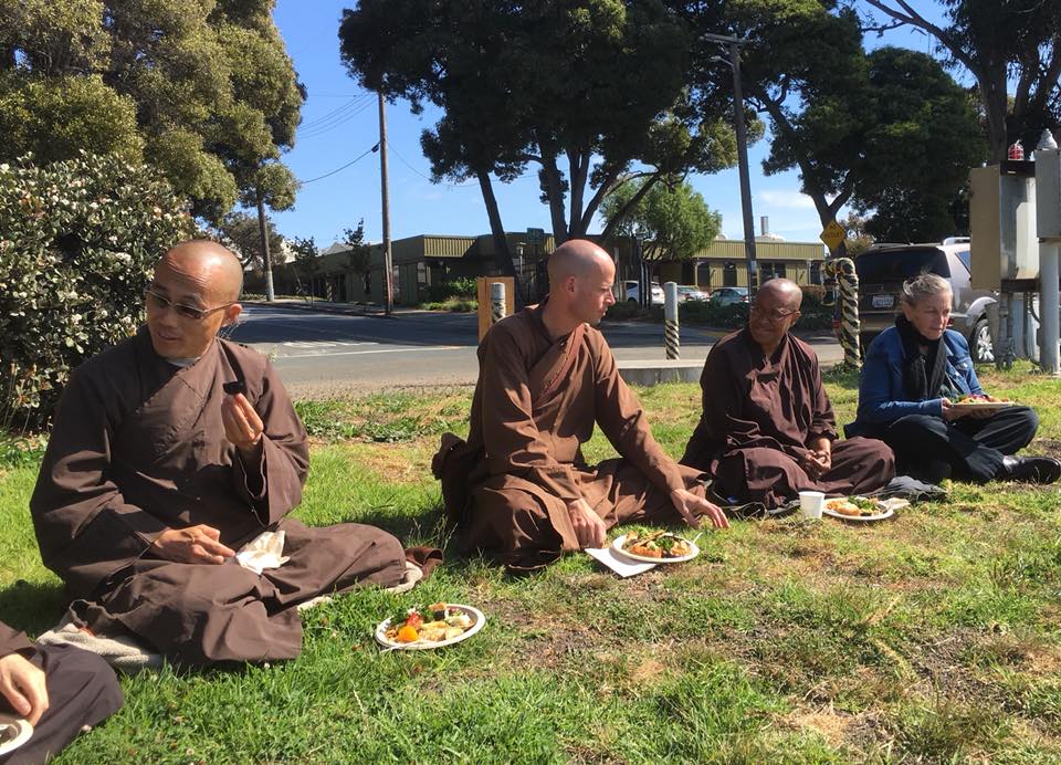 Front row: Sister Hoan Nghiem, Sister Hiến Nghiêm, Brother Pháp Dung, Sister Chan Duc, Sister Lăng Nghiêm, Sister Trai Nghiêm, Terri Saul, and Brother Phap Linh
