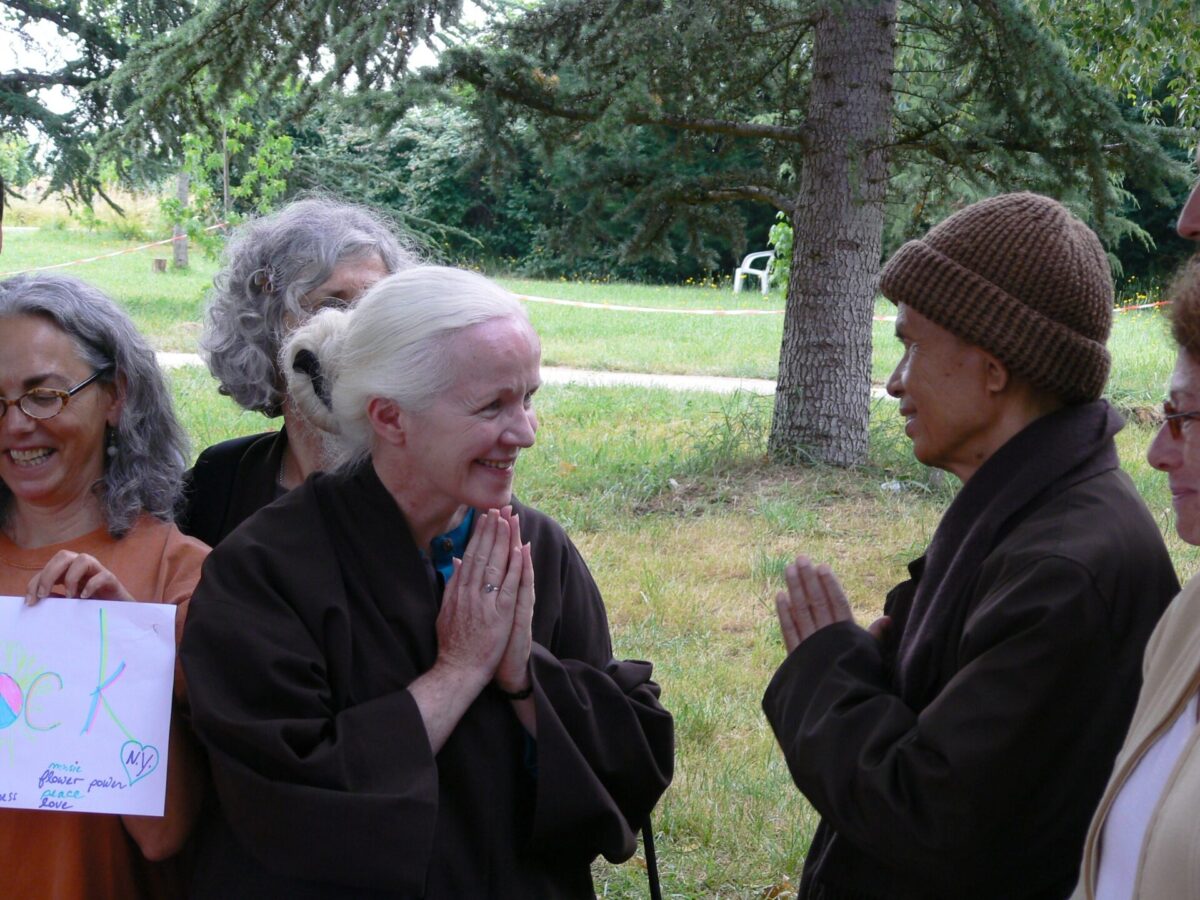 Joanne Friday and Thich Nhat Hanh at the 21-Day Retreat, Plum Village, 2006, photo by Richard Friday