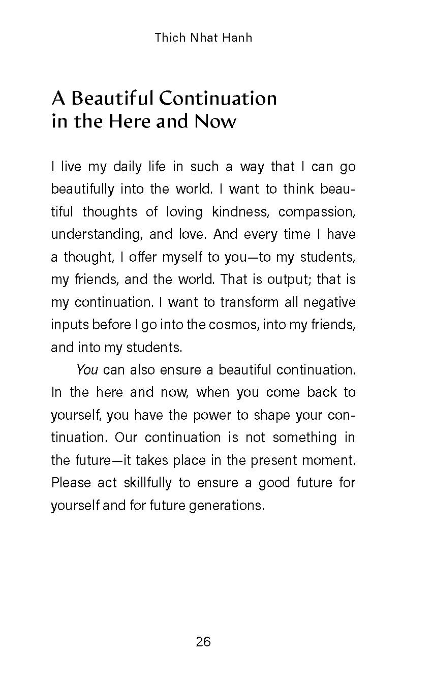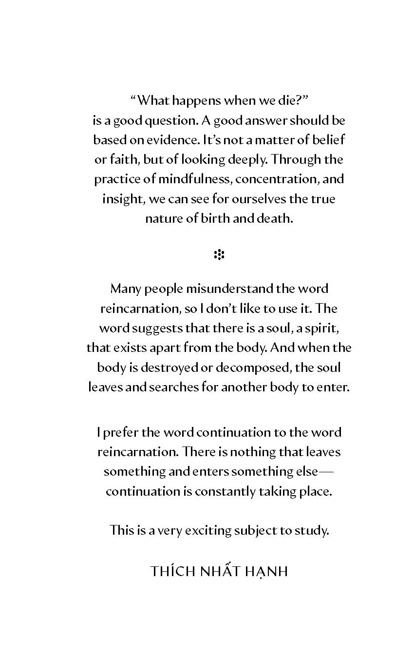 In this profound short book, Thích Nhất Hạnh offers clear, accessible reflections on the nature of reincarnation—which he calls “continuation.”