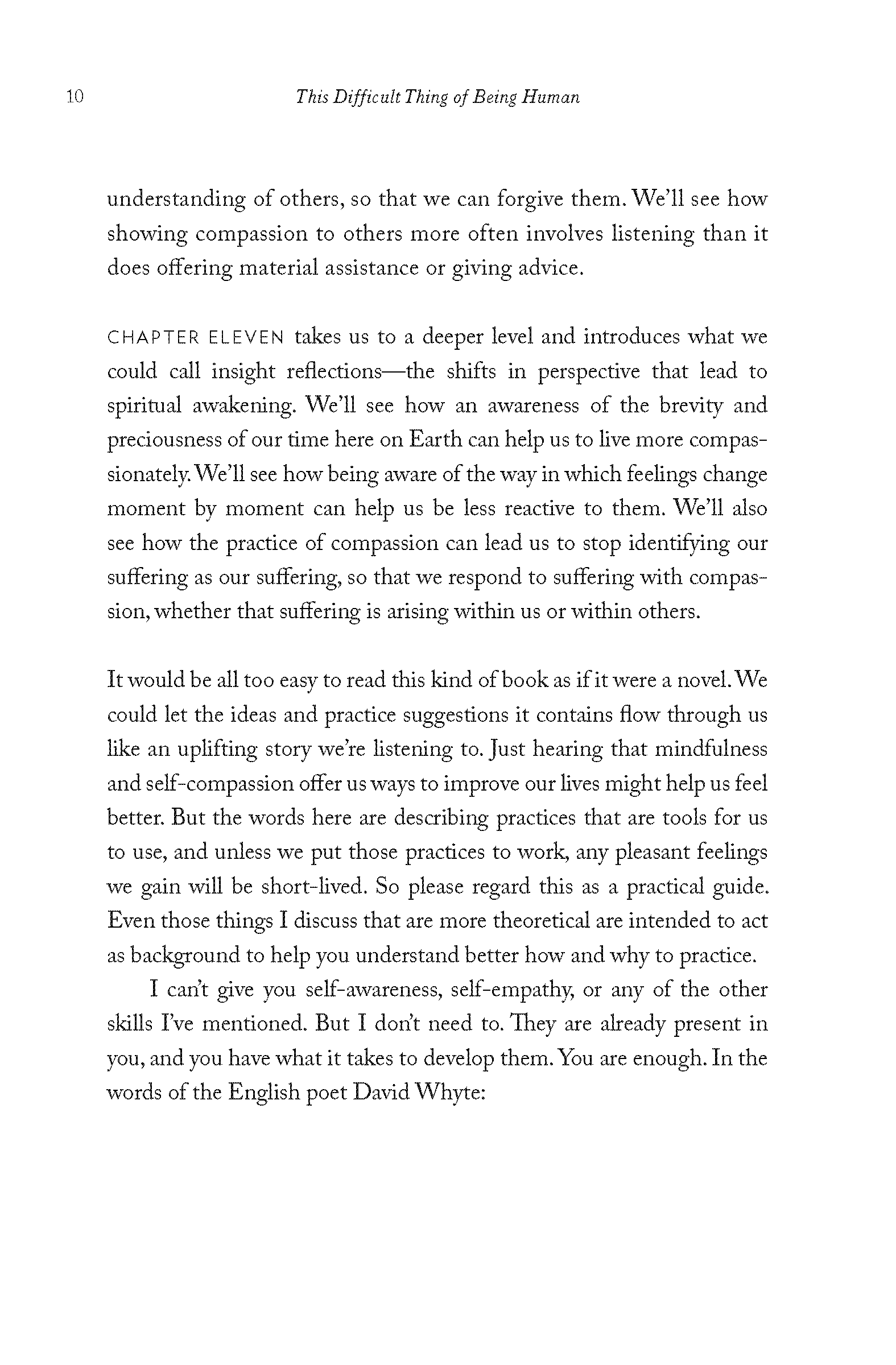 In This Difficult Thing of Being Human, Bodhipaksa provides both the why and the how of mindful self-compassion, drawing on contemporary psychology and neuroscience and also on Buddhist psychology, weaving the modern and ancient together into a coherent whole.